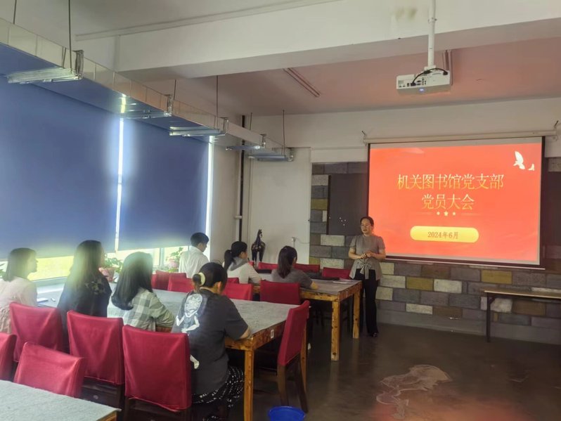 2024年6月17日,机关图书馆党支部召开党员大会,本次会议的主题是学习《发展新质生产力是推动高质量发展的内在要求和重要着力点》《中国共产党纪律处分条例》,以及抓好党纪学习教育,把纪律规矩转化为政治自觉、思想自觉、行动自觉。同时,会议还进行了预备党员王洪超同志的转正表决。会议由机关图书馆党支部书记卢冬岩主持,全体党员参加。