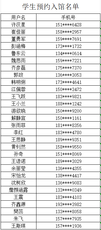 六楼自习室为入馆签到学生准备的座位按照上一学年大家入馆签到和预约入馆次数多少的顺序给大家分配固定座位。请名单上的同学于8月28日至8月30日8:10-20:00期间到图书馆二楼借阅室登记固定座位,按号入座。逾期未确认视为放弃权利,将自动顺延。