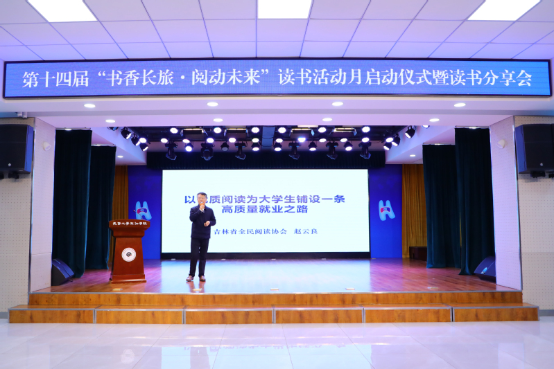 为深入贯彻落实习近平新时代中国特色社会主义思想和党的二十大精神关于深化全民阅读活动的重要部署及学校“品牌深耕年”工作安排,全面落实立德树人根本任务,学校在第30个“世界读书日”举办第十四届“书香长旅·阅动未来”读书活动月启动仪式暨读书分享会,学校党委副书记高阳、副校长杨威、吉林省全民阅读协会会长赵云良、秘书长王义彪、各学院团委书记、图书馆、校团委全体教师、学生代表共计500余人参加本次活动,会议由团委书记蒋森主持。