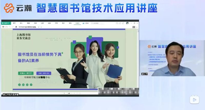 随后,全体馆员参加《图书馆员在当前情势下具备的AI素养》线上专题培训会,中国科学院文献情报中心研究员顾立平担任培训主讲嘉宾。顾立平从人工智能技术演进脉络切入,系统阐释了新时代图书馆员 AI 素养的核心构成,包括基础技术认知、数据思维培养、智能工具应用能力及伦理规范意识等维度。他强调,面对大模型技术在智能检索、知识管理等领域的突破性应用,馆员需建立“技术+人文”的双重思维体系,通过参与专项培训、实践项目研发等途径持续提升数字素养,以适应智慧图书馆建设对复合型人才的需求。