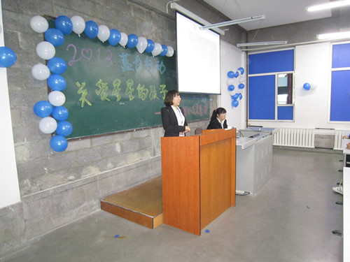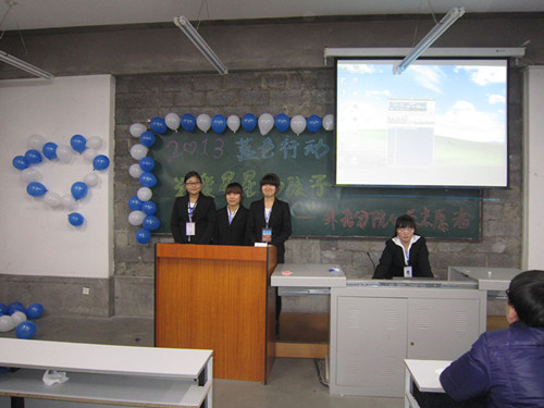 我院心蕊志愿者协会《2013蓝色行动 关爱星星的孩子》自闭症公益宣传活动于2013年4月2日世界自闭症日在教学楼311教室成功举办。