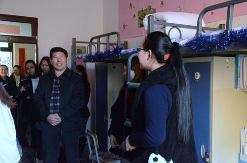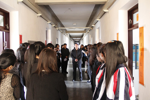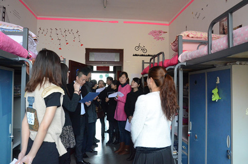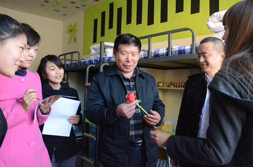 我院于2013年4月3日上午举办了第十二届寝室文化节之寝室创意设计大赛,大赛邀请到了金沙js9线路中心马维东副院长,公寓中心张力主任、胡英海副主任,学生工作处隋松鹤、李袁、李桂林老师,7、8公寓李艳薇、刘艳、任尔赛老师。在姚玉新副院长,学办许乔木主任,团委孙野书记,孙丽影、李妍、蔡施思三位辅导员老师以及学生会主席团成员的陪同下,共同参观了12级43个寝室的精心设计。亲临现场的马院长对每一个寝室都做了点评和指导,并与同学们亲切交谈,关心了解大家的生活、学习情况。