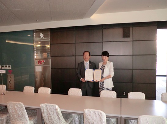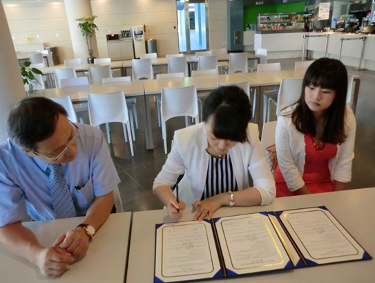 图1-2 于芳董事长与南首尔大学交换双方合作协议文本