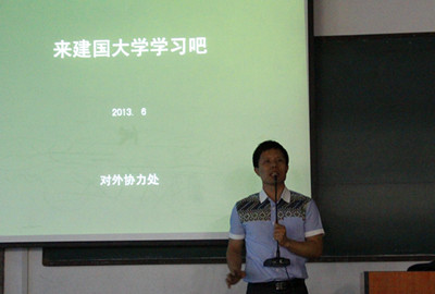 留学说明会由冷震洲处长主持。韩国建国大学GLOCAL校区对外协力处主任李东万详细介绍了该校校区概况、专业设置、招生日程、申请材料、奖学金制度、留学生认证、留学生支援制度等情况。根据韩国各高校留学生学习情况比较结果显示,建国大学GLOCAL校区的留学生入学后100%在本校毕业,无一人转学,由此表明该校具有优秀的留学生管理政策。