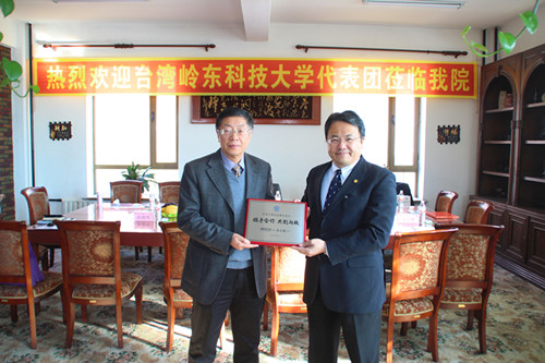 2013年12月5日,台湾岭东科技大学校长赵志扬率该校代表团一行四人访问我院。常务副院长佟成春、董事长助理西丹丹在行政楼二楼接待室接见了来访客人。外国语学院、国际交流学院院长黄江,艺术学院院长孙虎鸣,艺术学院副院长郑志辉,外国语学院院主任满歆琦及国际交流学院张俊梅老师参加了会见。