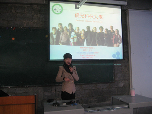 2013年12月18日下午,国际交流学院在教学楼311教室组织了一场赴台湾侨光科技大学进行短期研修的宣讲会,来自旅游管理学院、经济管理学院、艺术学院及外国语学院共二百余名学生参加了此次宣讲活动。