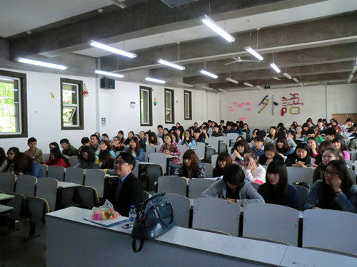 2014年4月11日下午,国际交流学院在教学楼309教室第三次组织赴台湾侨光科技大学进行短期研修的宣讲会,来自台湾侨光科技大学国际与两岸事务中心主任傅秀仁博士以及校务顾问汤恬恬女士专程来到我院开展项目宣讲,各分院百余名学生到会参加。