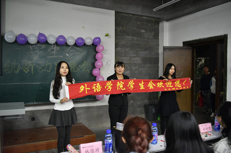 迎着那九月丝丝凉意的秋风,带着对未来美好的憧憬,你们从远方信步而来。为了给学生会注入新鲜血液、增添新的活力与激情、更加高效全面地开展各项校园活动,外国语学院学生会于2015年10月12日举行了学生会纳新动员大会。学院领导对这次活动高度重视,学生会成员也对这次活动进行了精心的组织和安排,希望能为新生们提供梦想起飞的平台。