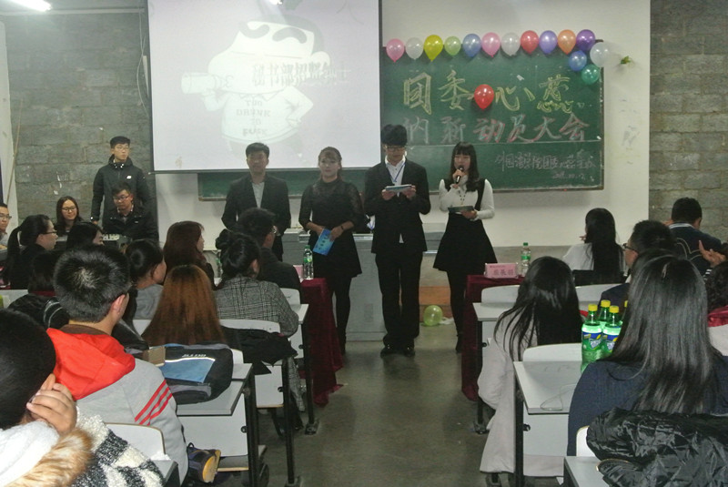 在大学校园里,学生组织不仅仅是一条维系老师与同学们之间的纽带,它更象征着理想、青春、拼搏与活力。为了更好的建设这支耀眼、荣光的学生干部队伍,注入生命力更加旺盛的新鲜血液,金沙js9线路中心外国语学院团委、外国语学院心蕊志愿者协会在2015年10月12日晚于309教室联合举办了两大学生组织的纳新动员大会!