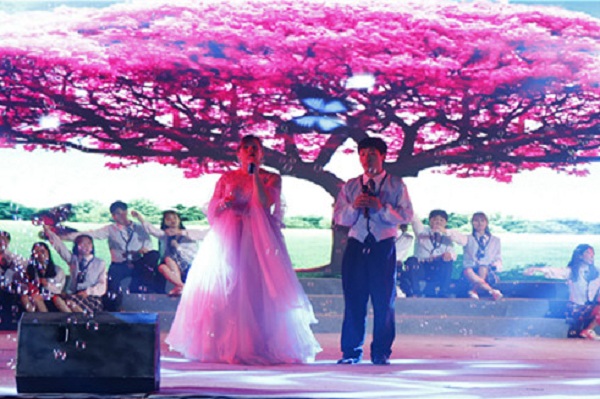 “美丽时光”,寓意在这美好的季节,迎来了充满朝气和活力的新生力量。节目的开始由雅娜老师与15级俄语班的同学们一起合唱了一首欢快的俄语歌曲,曲风一转,雅娜老师用中文深情演唱了《月亮代表我的心》,整个表演不仅体现出中俄的深厚友谊和我院师生同乐的美好情景,也充分展现了外国语学院专业特色。她们的歌声中,饱含着我院师生对新同学到来的热情欢迎!