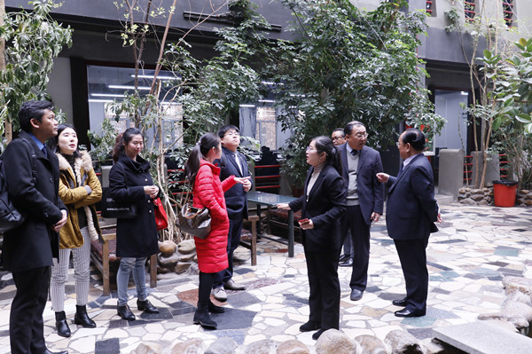 随后,黄江院长陪同各位代表参观了金沙官网校园,室内的园林景观给他们留下了深刻的印象。