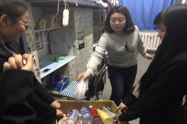 在青年志愿者协会主席团的带领下,志愿者们走进学生寝室,宣传资源循环利用和节约资源的环保意识,介绍废物回收后的用途。让更多的同学了解活动意义,不仅是一次有利于环境保护的行动,还是一次向社会弱势群体传递温暖和爱心的行动,也是当代大学生向社会贡献自己绵薄之力的行动。