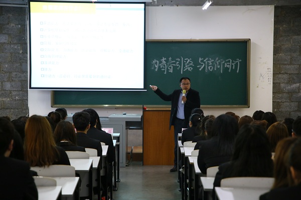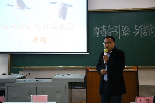 随后,于刚书记致词、宣布正式开班,并为全体学员和团学干部做了题为《做一只高飞的领头雁》的专题讲座。于刚书记结合自己多年的学生干部经历以及学生工作管理经验,深入浅出的从学生干部的作用、定位、方法和素养等方面进行了讲解,强调学生干部应有大局观,给自己定好位;做事情要有自己的思考,讲究方法、效率和效果;善于沟通,有团队、奉献和创新精神,使与会人员受益匪浅。最后,于刚书记勉励同学们,学生干部的实践是成长的最好途经,路虽然还很长,但时间不等人,容不得有半点懈怠。只有实事求是做人才能赢得尊重,脚踏实地做事才能获得成功,愿大家将来都能成为高飞的领头雁。