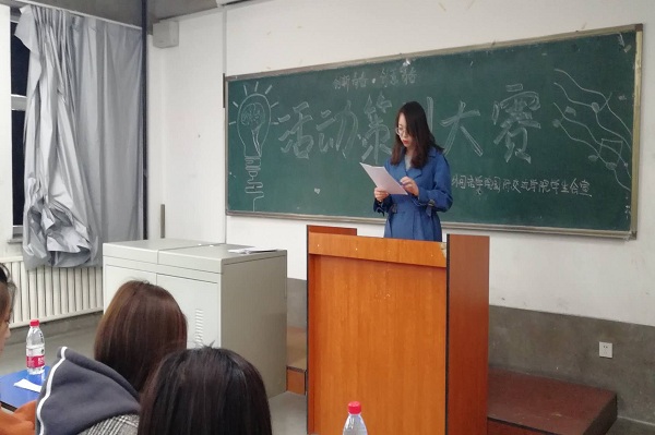 随后,学生会秘书部副部长刘仪玮介绍比赛流程和选手的出场顺序,比赛正式开始。选手们从活动构思、目的意义、形式、具体流程等多个角度进行了策划案的阐述。