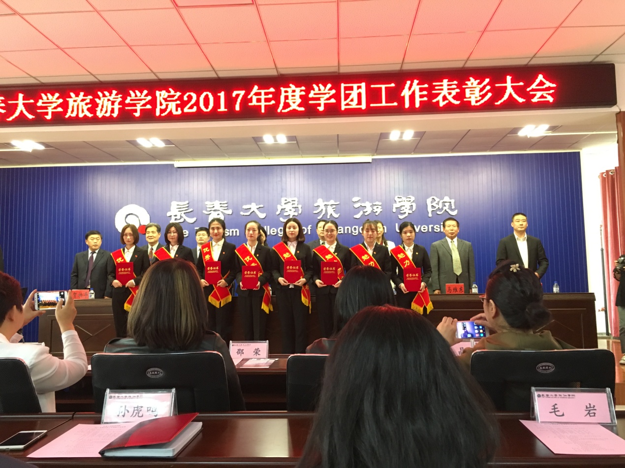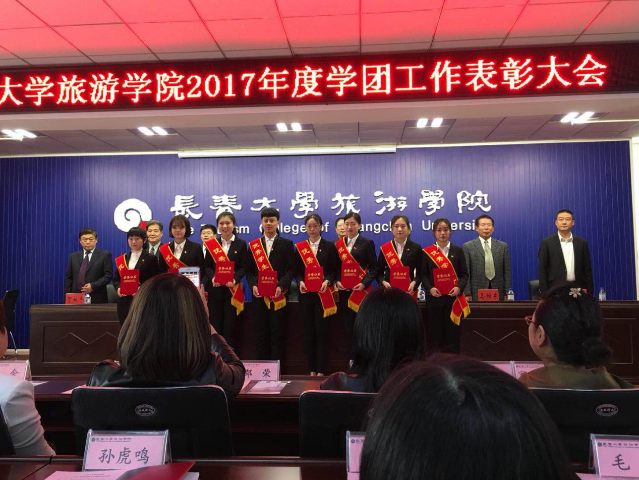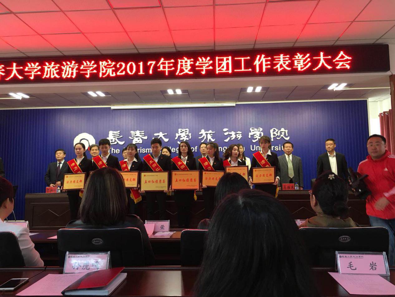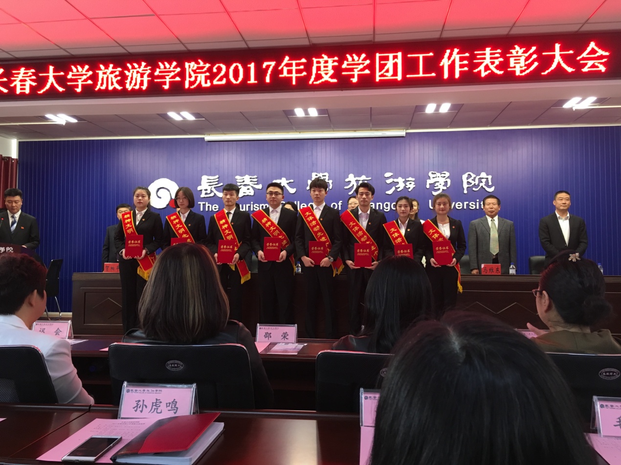 会议由校长助理、学生工作处处长高阳主持,奏唱国歌后,党委副书记、纪委书记程越宣读了《关于表彰金沙js9线路中心2017年度学团工作先进集体和优秀个人的决定》,我院共7个集体荣获“活力团支部”、“优秀班集体”、“文明寝室”称号,陈欣悦等13人荣获“优秀大学生”称号,陈宇航等12人荣获“优秀共青团员”称号,管书跃荣获“优秀团干部”称号,白一辰等9人荣获“优秀学生干部”称号,黄赛然荣获“魅力团支书”称号,董佩琪等6人荣获“优秀志愿者”称号,杜旭等20人荣获“文体活动先进个人”称号,冯宇航等4人荣获“精神文明先进个人”称号。