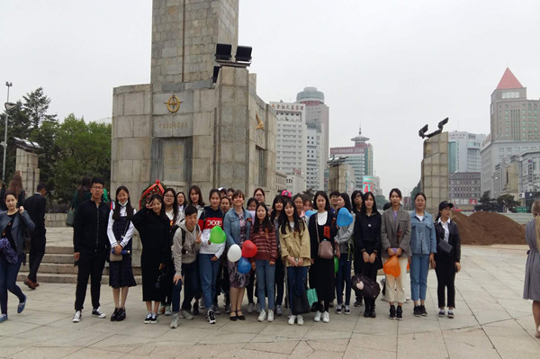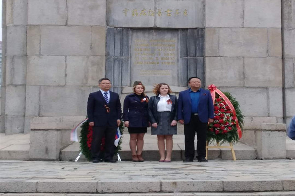 在人民广场纪念碑前,我院学生手执鲜花,同各校师生一起聆听领导致辞和英雄故事,歌唱«На безымянной высоте»,共同缅怀英烈和死难者,为烈士献花寄托哀思。之后观看了吉林大学学生代表歌唱的«喀秋莎»、长春大学学生代表朗诵的诗歌及俄罗斯留学生们带来的精彩舞蹈。