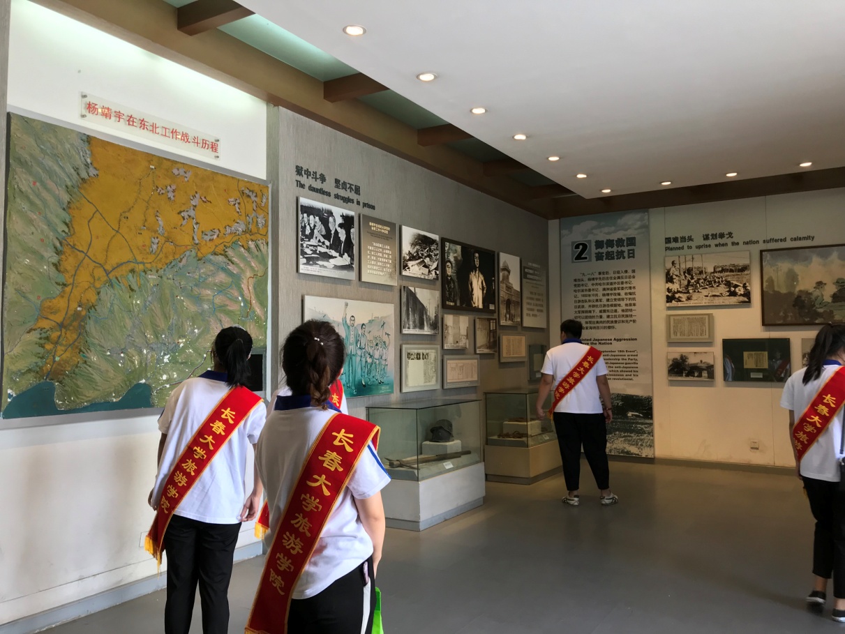 在陵园两侧的将军生平业绩展室,实践团成员参观了杨靖宇将军青少年时期和革命生涯中的遗物,以及在抗击日本侵略者艰苦岁月里的一些用品和战利品,进一步加深了对革命先烈抛头颅、洒热血的红色精神和民族气节的理解。