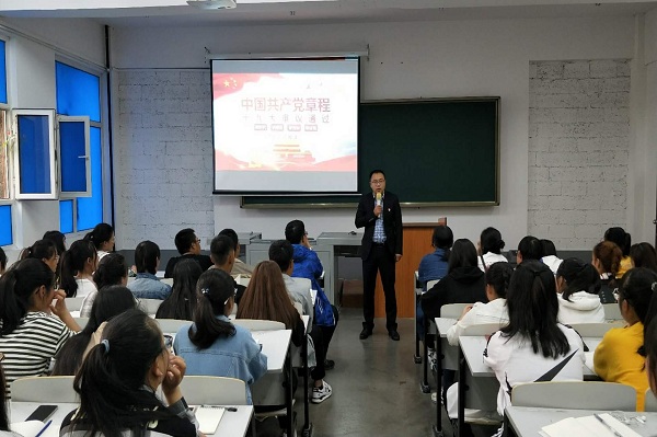 为深入学习习近平新时代中国特色社会主义思想和十九大精神,全面提升新生的政治思想素质,深化新生对中国共产党的正确认识,端正入党动机,坚定加入中国共产党的执着追求,9月17日、18日我院党总支书记于刚为外国语学院、国际交流学院265名新生做入党启蒙教育专题报告。学生党支部书记李姗、组织委员孙野和在校生党员共同参加了报告会。