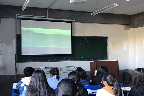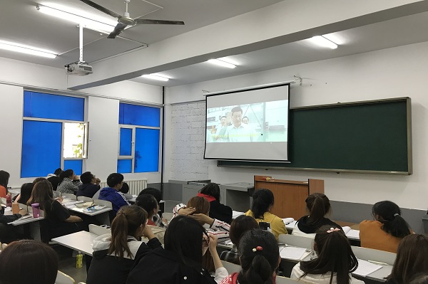 2018年9月18日下午,外国语学院(国际交流学院)党总支组织员、辅导员孙野,组织2018级全体新生于教学楼222、309教室,观看了电影《厉害了,我的国》。