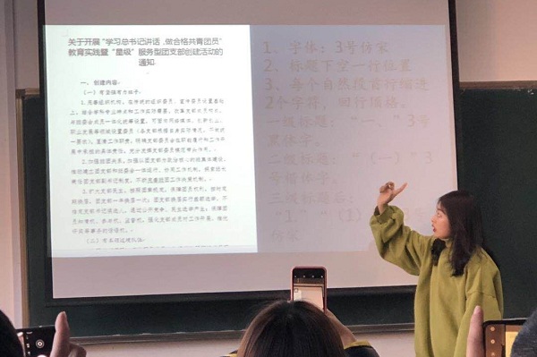 戴湘汶、姚春雨分别从常用办公软件的基本操作和策划书、新闻稿的撰写入手,对日常工作中的常规操作和易犯错误做了重点提醒,结合实例文件进行了充分详细的讲解,直观有效地展示了办公软件和公文写作的应用要领和强大魅力,使同学们意识到熟练掌握办公软件、写作要点,提高办公能力的重要性。