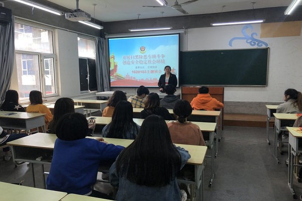 4月11日-12日,辅导员以班级、年级为单位开展专题教育活动。宣传扫黑除恶专项斗争工作应知应会知识,特别讲解网络诈骗、“校园贷”等知识,切实提高学生的预防能力。要求广大同学自觉保护好个人信息,树立正确的价值观和消费观,一旦陷入非法“校园贷”时,第一时间向老师、警察及金融消费者权益保护机构寻求解决办法。同时在学生之间开展排查工作,为扫黑除恶工作顺利开展营造良好氛围。