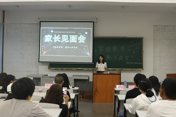为加深2019级学生家长对学院基本情况的了解,增进学院与家长的沟通交流,实现“家校共育、助力成长”,外国语学院、国际交流学院分别于2019年9月6日、7日下午,在教学楼309教室召开了2019级新生家长见面会。党总支副书记孙野、副院长王丹、学院办公室主任刘名、新生辅导员高诗聪出席会议。会议由团委书记兼学生工作办公室主任戴军威主持。