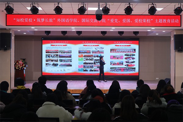 为全面贯彻落实党的十九大精神,深入学习贯彻习近平总书记系列重要讲话精神,着力提升大学生思想政治教育质量,引导学生深刻领会每个人的前途命运与国家和民族的前途命运紧密相连,以人才培养为根本任务,以改革创新为动力,结合我院实际情况,11月14日,面向17级、18级高年级学生在大学生活动中心开展“知校”、“爱校”、“荣校”“强校”主题教育。旨在通过学校历史介绍、播放学校宣传片等内容,让学生深入了解学校发展史、艰苦创业史以及学校取得的辉煌成就,激发高年级学生的爱校荣校情怀,增强学生对学校、学院的认同感、归属感与荣誉感以及奋发成才的责任感和使命感。