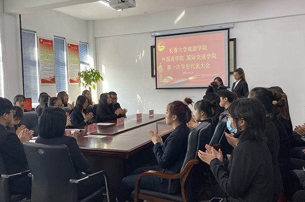 坚定跟党走,奋进新时代。10月28日,外国语学院、国际交流学院第一次学生代表大会在综合楼201顺利召开。党总支副书记孙野、学院团委书记戴军威出席本次大会。辅导员李姗、礼晓宇、高诗聪、各年级正式代表30人参加了会议。
