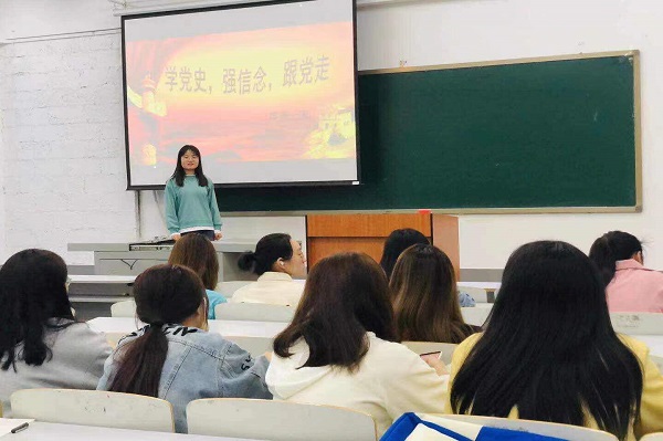 在此次活动中,20级各班团支书通过《理想照耀中国》影片及PPT讲解,向大家讲述了中国共产党百年奋斗的历史进程,带领同学们深刻感受革命前辈在艰苦卓绝的革命斗争中甘于奉献、勇于担当的精神,无论是从战火纷飞的革命年代到改革创新的新世纪,还是从非典爆发到如今的新冠病毒,中国共产党始终与我们共患难、共成长,带领中华民族走向伟大复兴。同学们也踊跃发言,表达自己对中国共产党的崇高敬意。