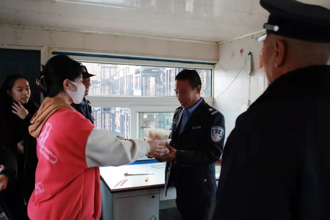 同学们把煮好的饺子送给刚刚清扫完校园树叶的后勤保洁人员、修理完寝室窗户的维修班师傅以及正在值勤的保卫处保安人员。热气腾腾的饺子驱散了初冬的寒冷,饱含着长旅学子对默默付出、辛勤工作的最可爱长旅人们的感谢。