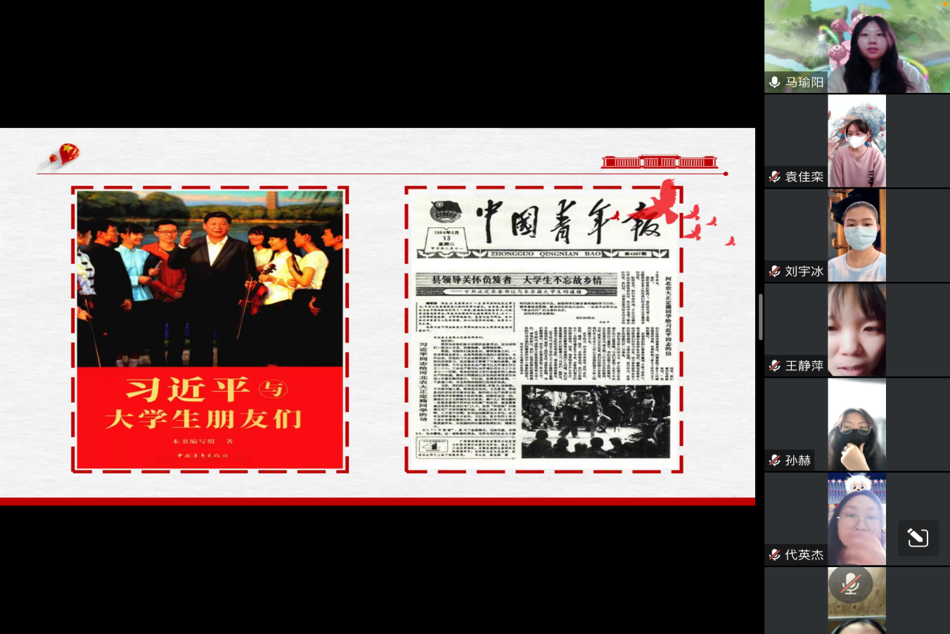 《习近平与大学生朋友们》一书再现了习近平总书记矢志不渝的初心坚守,永不懈怠的使命担当,情暖民心的赤诚情怀和求真务实的优良作风,各年级团支部借助腾讯会议、钉钉等软件共同深入解读书籍内涵,纷纷畅谈感想,表示要牢记嘱托,不忘初心,为梦远航,接续奋斗。
