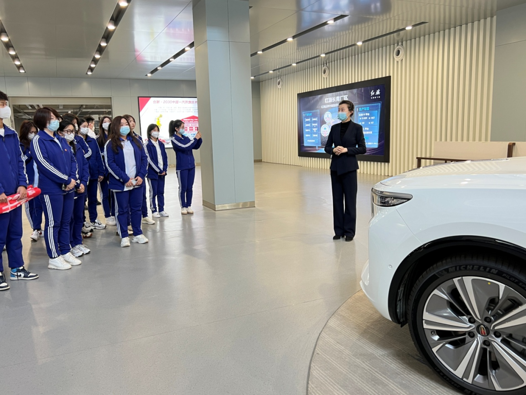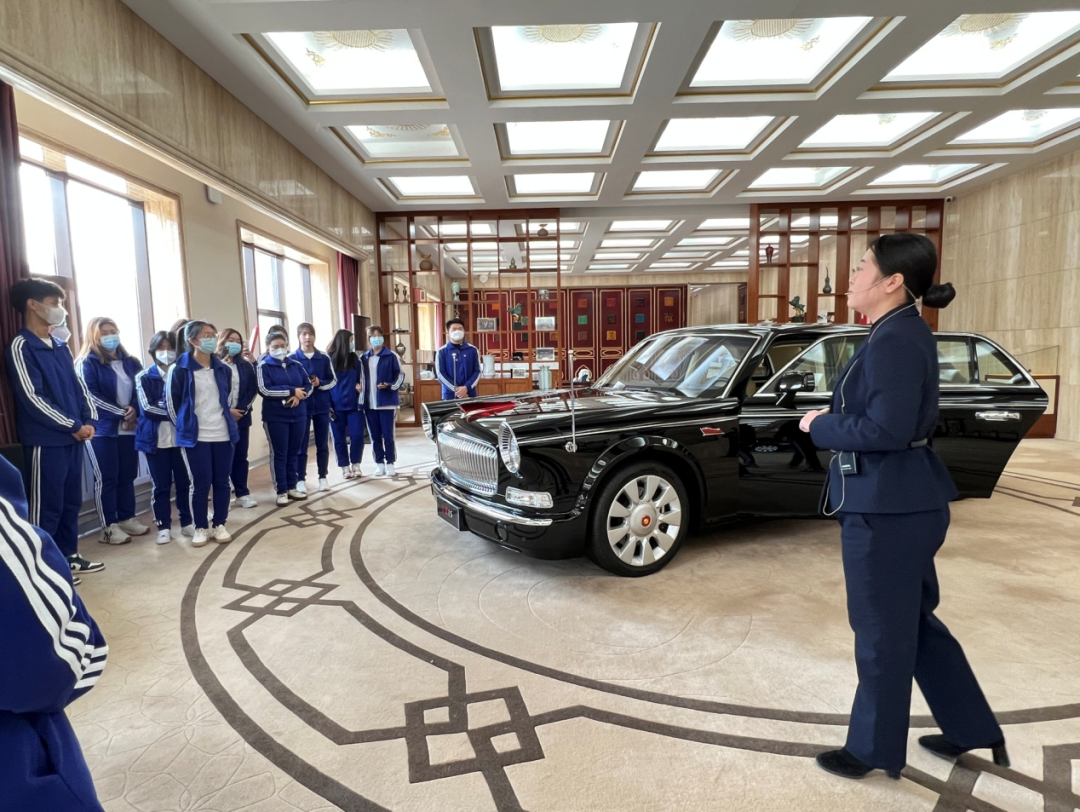 怀揣着高昂的热情与憧憬,同学们在讲解员的带领下参观展馆,了解红旗轿车的发展历程。同学们见证了一张张记录着红旗品牌精彩瞬间的照片,深切领略到中国劳动人民艰苦奋斗、开拓创新的民族精神。