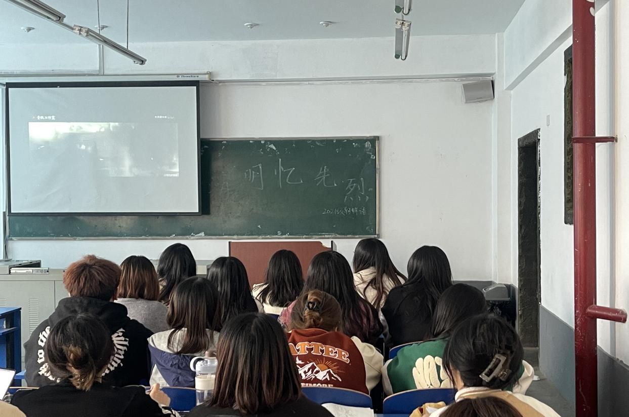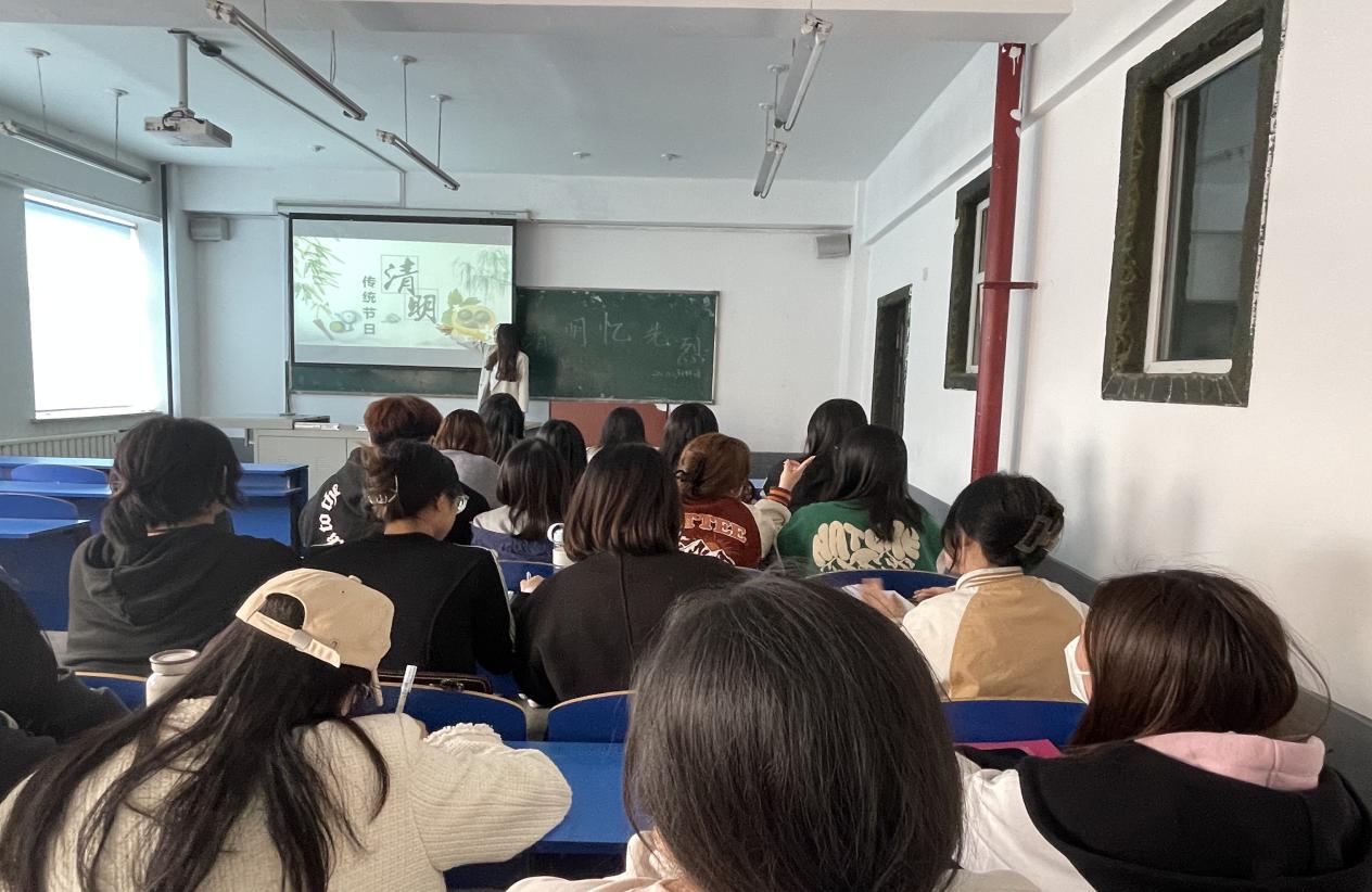 班会上,辅导员孙欣悦带领同学们共同观看红色视频,深入学习革命先烈们抛头颅、洒热血,将自己的生命奉献给国家的感人事迹,体会到当代幸福生活的来之不易。同时,根据班级学情,围绕英烈故事,郭鹏欣、邢丽岩两位同学讲述了清明节的由来及风俗习惯,进一步激发了学生们缅怀英烈的情愫。会后,同学们纷纷表示,他们将继承和学习革命英烈们不畏艰难、勇于献身的革命精神,自觉弘扬民族精神,赓续红色血脉。