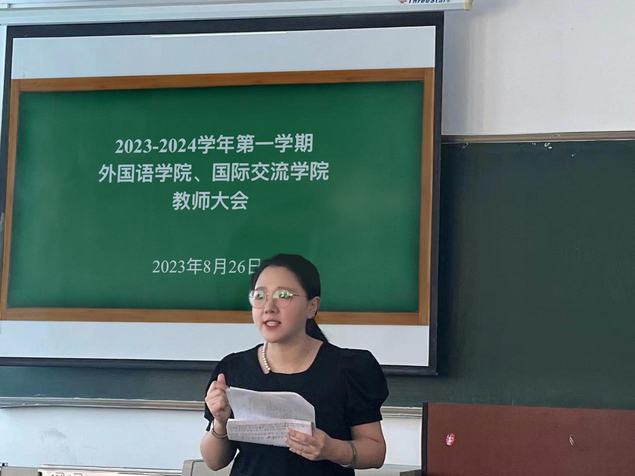 外国语学院、国际交流学院办公室负责人宗鹤从开学初的考勤工作、多媒体教室使用注意事项、OA申请备案等事项作出说明和提醒。