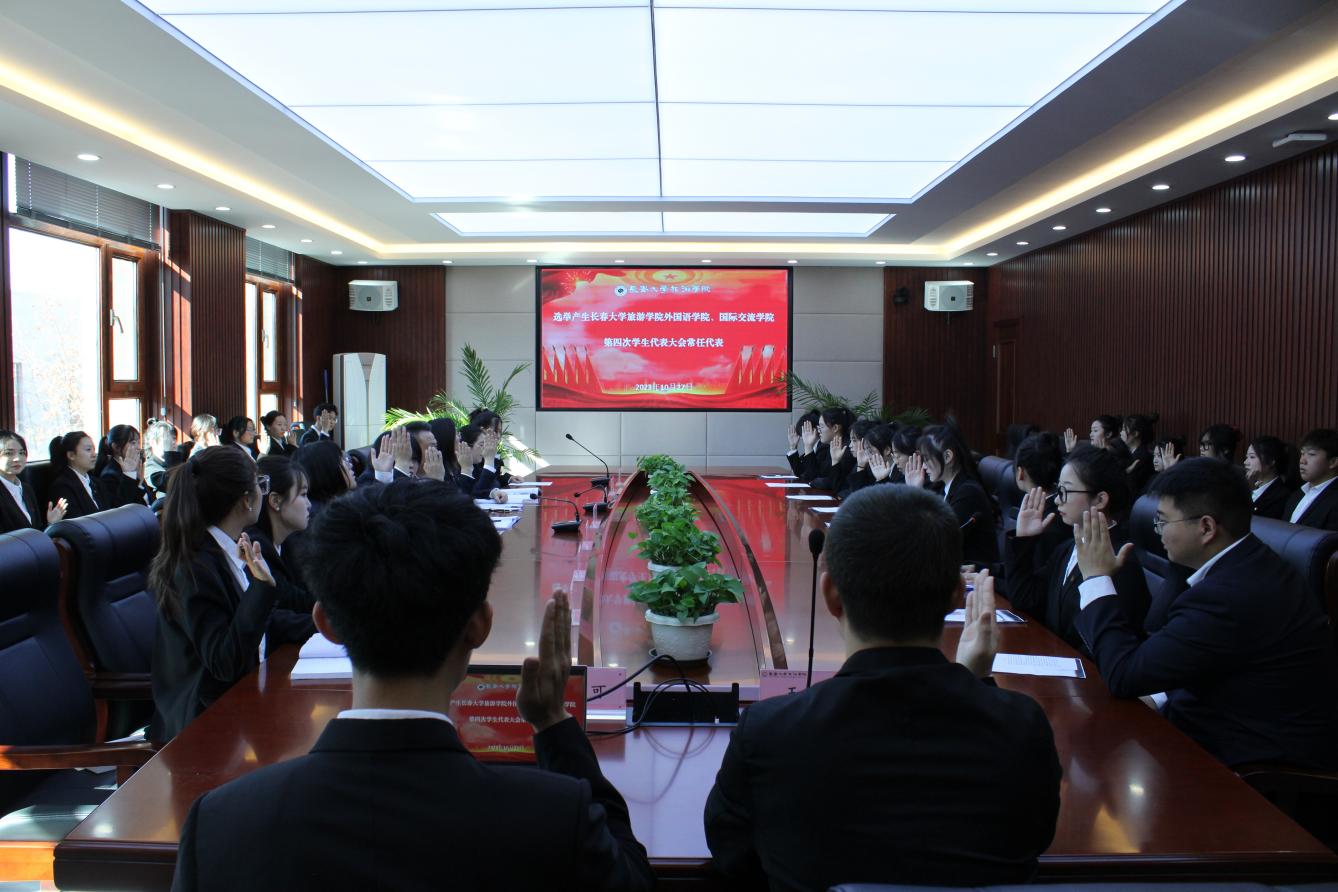 根据《中华全国学生联合会章程》《吉林省学生联合会章程》以及《金沙js9线路中心学生会章程》的有关规定,结合我院学生会工作的实际情况,经学院学生会研究、学院党总支同意,外国语学院、国际交流学院于10月27日在教学楼三楼会议室召开金沙js9线路中心外国语学院(国际交流学院)第四次学生代表大会。