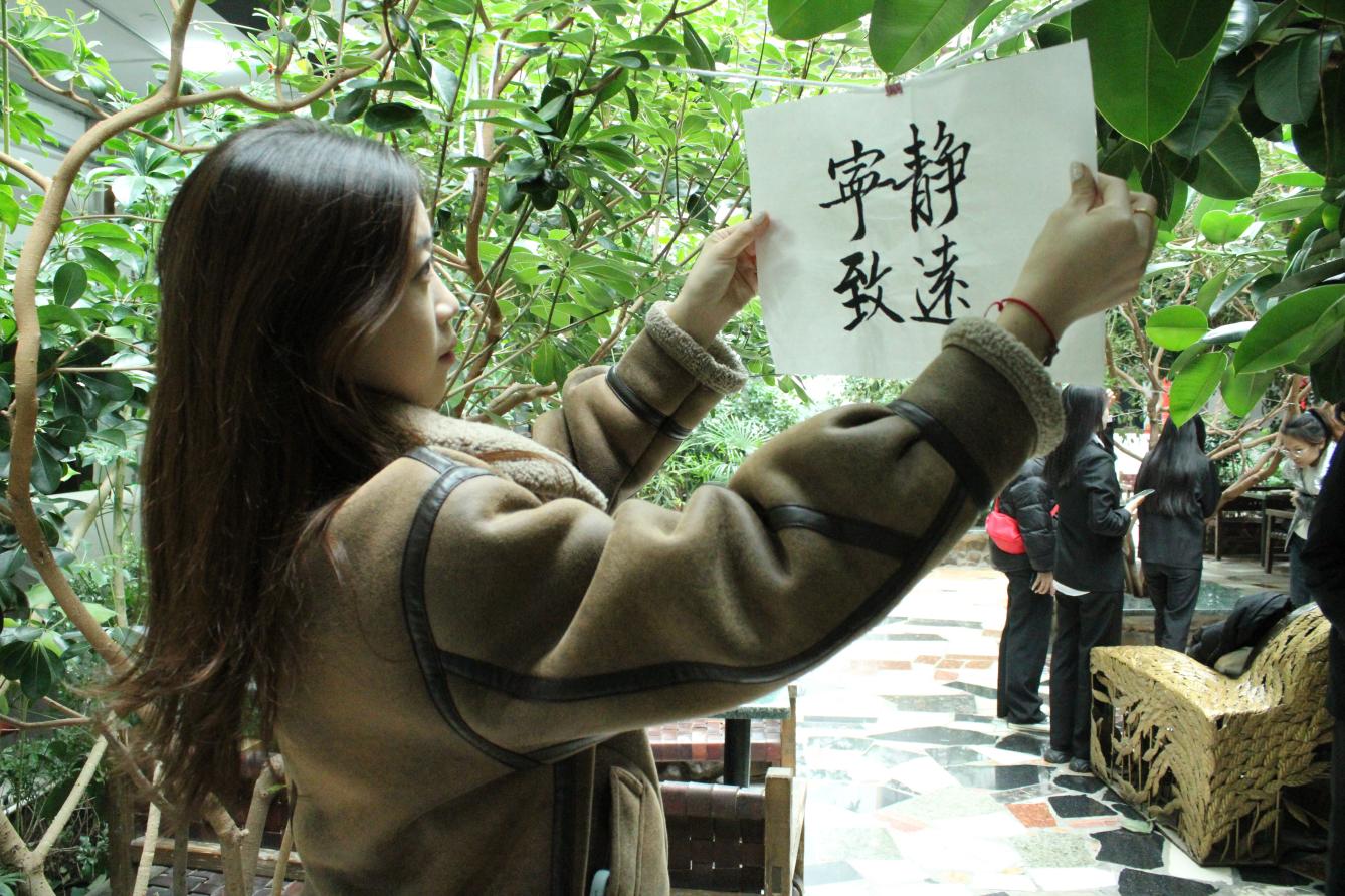 活动现场设有“毛笔随心写”“古诗词大赛”“棋王争霸赛”三个区域,让同学们在一笔一画中感受毛笔书法的无限魅力,在浅吟低诵中领略中华诗词的无穷韵味,在互相博弈中体会下棋的独特乐趣。现场氛围十分热烈酣畅,展现了我院学子昂扬向上的精神风貌。