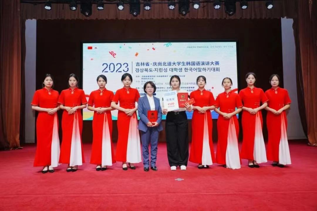 ▲我院学子承担2023年吉林省•庆尚北道大学生韩国语演讲大赛志愿服务工作