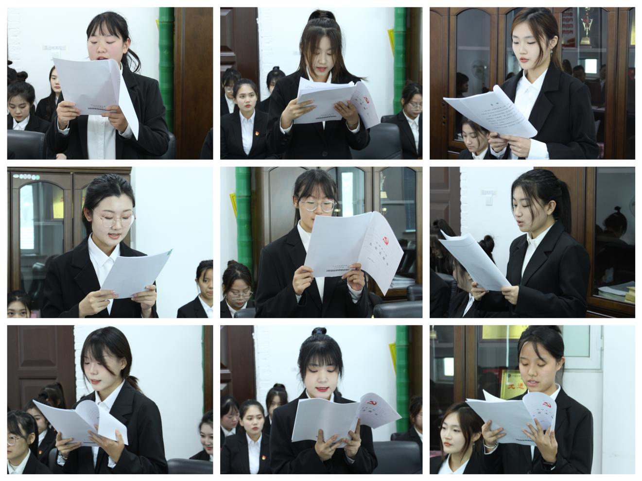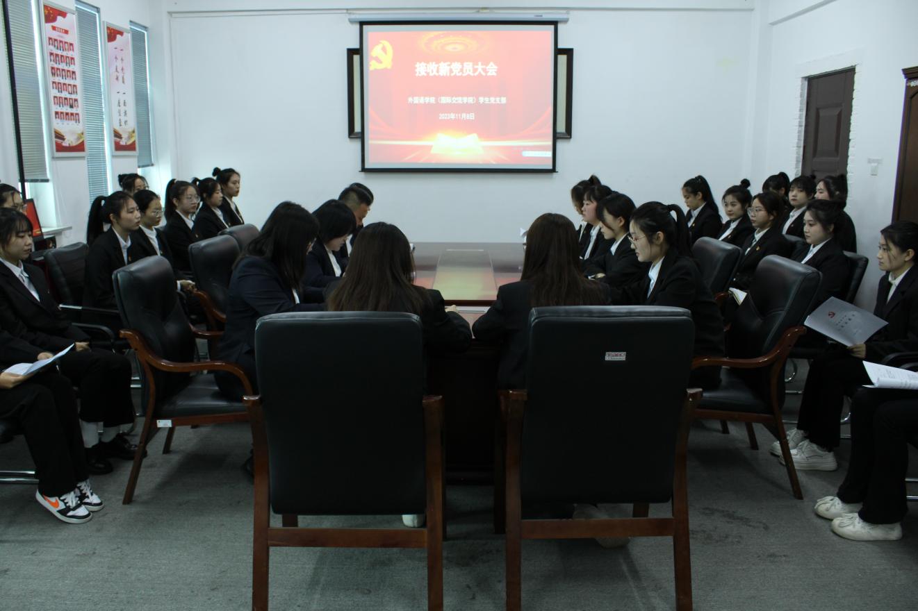 ▲外国语学院(国际交流学院)学生党支部召开2023年11月份接收新党员大会