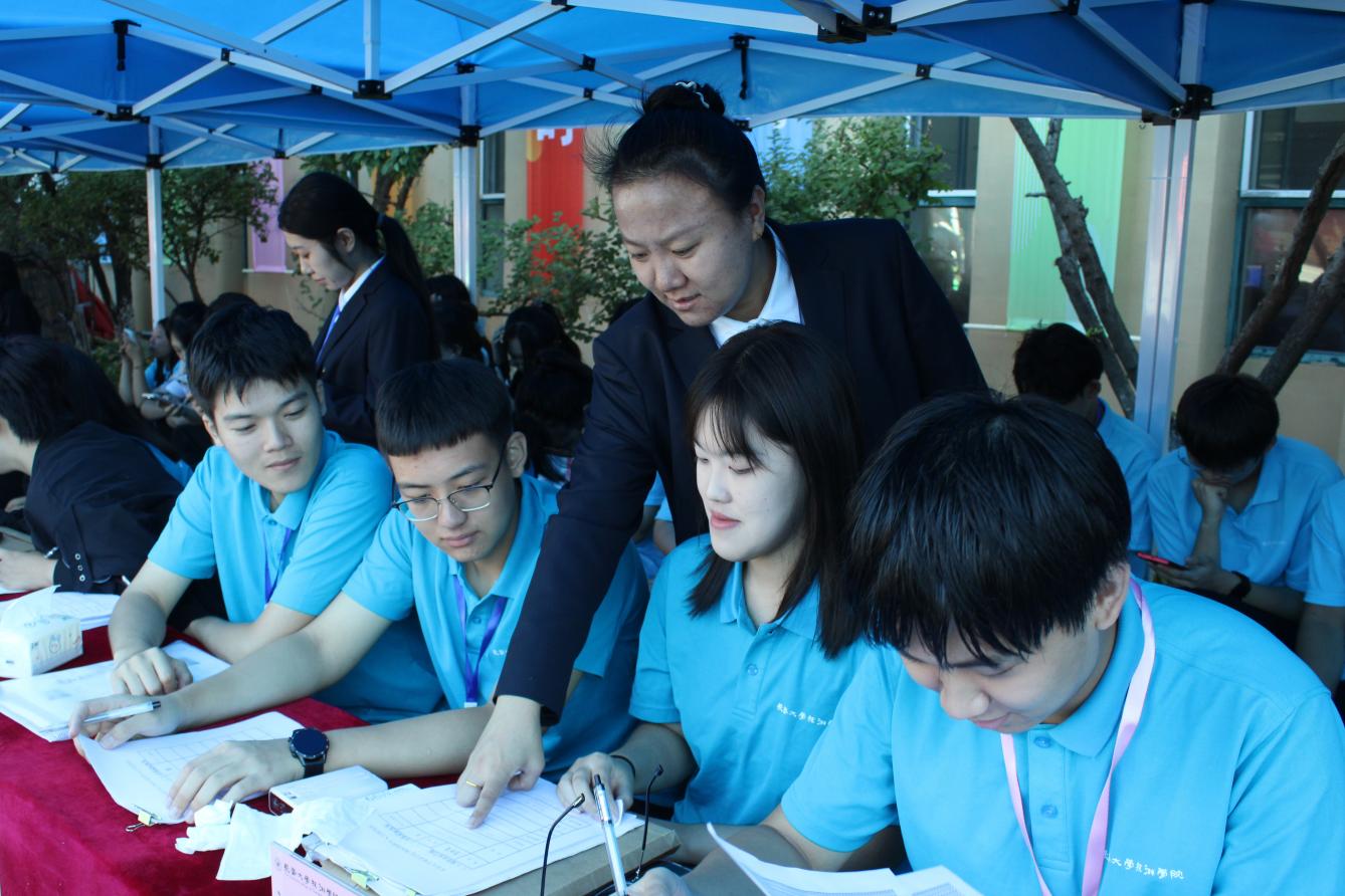 ▲学院各岗位有序进行迎新工作