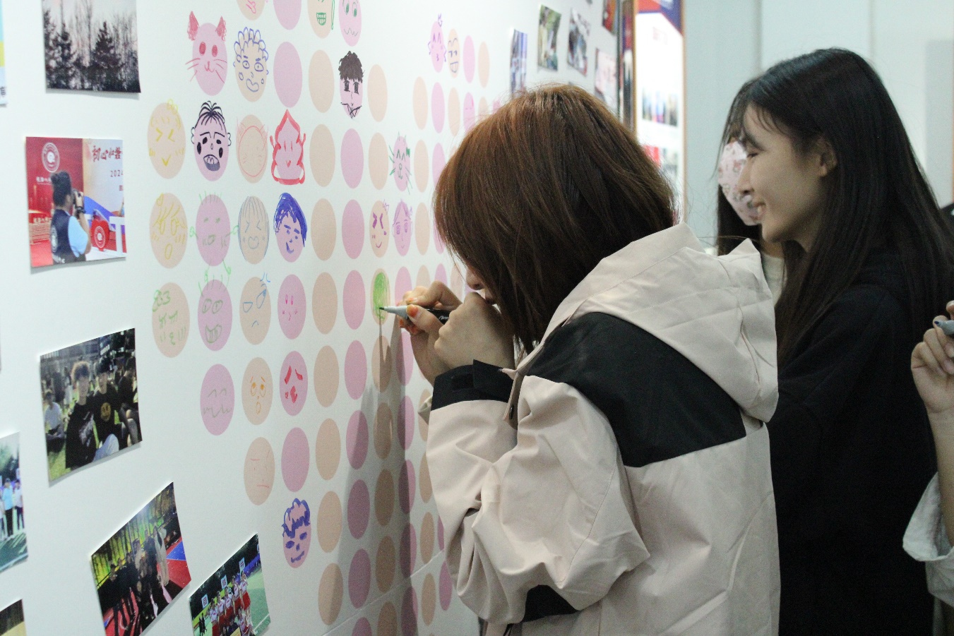 学院收集了80余张展现学院学子“向真、向善、向美”的学习风貌的照片,从学校发展、校园情感、求学历程、生活趣事、校园风光等多个角度选择、捕捉、记录了难忘和感动的大学校园生活。在活动现场,同学们纷纷拿起画笔,在展板上尽情挥洒创意,绘制出各式各样的笑脸。这些笑脸有的憨态可掬,有的俏皮可爱,有的则充满了阳光与活力,每一个笑脸都蕴含着同学们对学校的深厚情感。在绘制过程中,同学们不仅展示了自己的艺术才华,还相互交流、分享彼此的创作心得,现场气氛热烈而温馨。