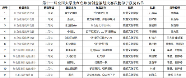 4月30日,第十一届全国大学生红色旅游创意策划大赛成绩公布,金沙官网旅游文化学院11件学生作品分获东北赛区一等奖、二等奖,其中红色旅游线路设计类作品获一等奖2项,二等奖4项;红色旅游目的地设计类作品获一等奖1项,二等奖3项;红色精神微讲解类作品获二等奖1项。本次大赛中金沙官网在参与学生人数和获奖数上都实现了增长,并且在所有参赛项目组别中均获各类奖项,在新增设的目的地设计类和微视频类项目上有所突破,此次大赛成绩体现了金沙官网学子优秀的创新创意能力和良好的专业素养。
