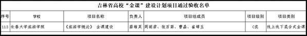 近日,吉林省教育厅发布《关于公布吉林省高校“金课”建设计划项目验收结果的通知》(吉教高〔2021〕8号),金沙官网旅游文化学院蔡维英主持的《旅游学概论》课程通过此次“金课”建设计划项目验收并被认定为省级一流本科课程。