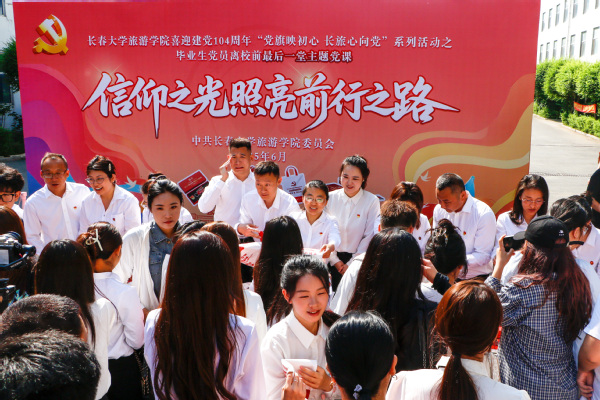 为庆祝中国共产党成立104周年,持续贯彻落实新时代党的建设总要求和新时代党的组织路线,激励广大党员干部在学校高质量发展中担当新使命、奋进新征程,推动党建引领下学校治理模式的创新突破,以高质量党建引领学校高质量发展,学校举办喜迎建党104周年“党旗映初心 长旅心向党”系列活动。