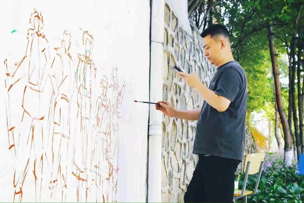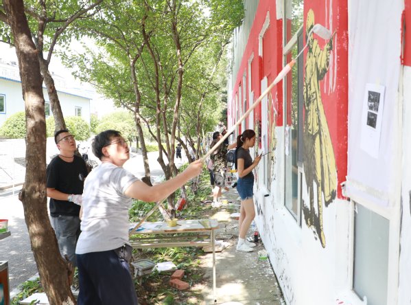 烈日下,艺术学院师生们一笔一画让红色基因在校园里焕发时代光芒